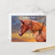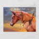 Un collage photographique d'un poulain arabe et d'un coucher de soleil coloré, affiché sur une carte postale. Le père de ce poulain est un cheval de championne. — Photo protégée par le droit d'auteur de la photographe Christina Spiegeland.