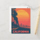 Carte Postale Coucher de soleil rétro sur des palmiers californi