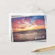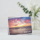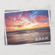 Photo carte postale d'un coucher de soleil coloré avec de grands nuages sur la mer du Nord et la plage de Kijkduin lors d'une soirée d'été à La Haye sur la côte ouest de la Pays-Bas avec un bord blanc et le texte 'Kijkduin'. L'image est un peu pivotée pour créer l'illusion qu'elle est en train de se détacher.