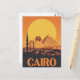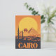 Cette carte de style vintage met en valeur une illustration saisissante de la skyline du Caire au coucher du soleil. Elle combine magnifiquement les merveilles antiques des Pyramides et du Sphinx avec le paysage urbain moderne et ses minarets. La palette de couleurs audacieuses et ensoleillées ainsi que la typographie rétro lui donnent une sensation classique et intemporelle, ce qui en fait une carte idéale pour un voyageur ou un amateur d'histoire et de culture mondiale.
