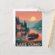 Découvrez la beauté époustouflante d'un coucher de soleil sur le lac de Côme avec cette carte postale de style vintage. Les tons chauds et dorés reflètent les eaux tranquilles, encadrées par les montagnes majestueuses du lac et les villas charmantes. Cette scène sereine évoque le charme romantique et intemporel de l’une des destinations les plus appréciées d’Italie, idéale pour les voyageurs, les collectionneurs et les amateurs d’art de voyage classique.