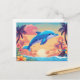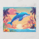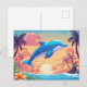 Carte Postale Coucher de soleil sur une île tropicale et dauphin