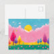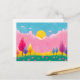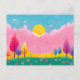 Carte postale de la nature illustrée colorée, Imaginaire de rêve Art de la nature, Ciel rose et arbres lunaires, Imaginaire dynamique scène de la nature