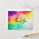 Carte de remerciement, avec un fond aquarelle présentant les couleurs de l'arc-en-ciel.