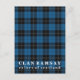 Belle carte postale avec le tartan de chasse bleu et noir Clan Ramsay.