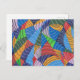 Le design est basé sur une peinture abstraite faite avec des marqueurs acryliques. On y retrouve toutes les couleurs de l'été, le bleu de l'eau et du ciel, le vert des forêts et des prés, le rouge et le violet clair des fleurs. Cette carte fera plaisir à tous : la personne qui l'écrit et l'envoie et les personnes qui la recevront !