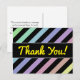 Les caractéristiques de conception ce de carte postale un motif des rayures ont coloré de diverses couleurs en pastel légères, avec les rayures noires entre elles. Il comporte également le message "Merci !" sur l'avant en jaune manuscrit-comme le texte, avec un message personnalisé de gratitude sur le dos.