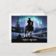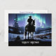 Season's Greeting country western cowboy with a beautiful winter scene of the northern lights. A pretty Christmas holiday postcard.