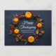 Exprimez votre gratitude à vos clients en envoyant des cartes de vœux de l'Action de grâce de votre entreprise à tous vos clients pendant cette période de fêtes. Cette belle carte postale moderne présente une belle photographie automnale d'une couronne décorée de petites citrouilles et de feuilles.