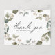 Carte de remerciement de thème de verdure rustique pour votre événement. Elle comporte une couronne aquarelle de feuilles d'eucalyptus à graines. Personnalisez en ajoutant des noms, une adresse de retour et un message. Cette carte de remerciement de verdure rustique est parfaite pour les mariages d'été, les douches et bien plus encore.
