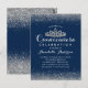 Invitation de Naissance Quinceañera Élégante et Moderne en Bleu Royal Argenté Pailleuré