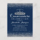 Invitation de Naissance Quinceañera Élégante et Moderne en Bleu Royal Argenté avec Paillettes sur Fond Ardoise