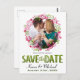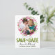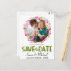 Carte postale de mariage personnalisée avec photo et couronne florale de printemps.