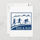 illustration d'une silhouette de course marathon coureur et cycliste avec montagnes et mots vélo et course fait dans le style rétro