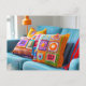 Carte Postale Coussins Carrés Granny au Crochet Allongés sur un