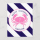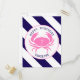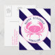 Carte Postale Crabe rose Nautique Invitation d'anniversaire