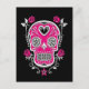 Carte Postale Crâne à sucre blanc et rose avec Roses en noir