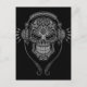 Ce dessin élaboré de crâne à sucre DJ est décoré de tourbillons complexes et de motifs à points. Les écouteurs sont assis sur le dessus du crâne avec deux fils suspendus en dessous. Cette image agressive inspirée de Day of the Dead est parfaite pour les musiciens et les mélomanes.