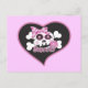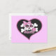Ce mignon crâne et les arêtes de croix avec pois rose arc et lollipop est placé sur un coeur et est une carte postale sucrée que tout le monde aimera.