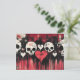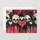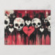Carte Postale Crâne et Coeurs Grunge - Art rouge et noir gras