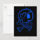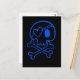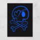 Un crâne bleu néon et une illustration de la croix avec un oeil en forme de coeur. Arrière - plan noir.