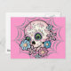 Crâne à sucre Dia de los Muertos (Jour des Morts) aux couleurs pastel avec des fleurs posées sur une toile d'araignée.