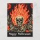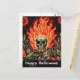 Carte Postale Crâne sur feu Linocut Art Halloween heureux