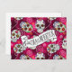 Carte Postale Crânes à sucre et tourbillons Rose Red ID725
