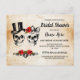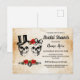 Carte Postale Crânes Roses de Fête de Fiançailles Ruban Rustique
