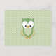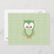 Carte Postale Crème verte douce mignonne et hibou jaune