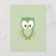 Carte Postale Crème verte douce mignonne et hibou jaune