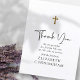 Ce design simple et classique est composé d'une typographie sérif et cursive sur un fond blanc simple avec une croix dorée fausse.