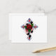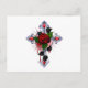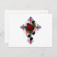 Croix d'argent avec une rose rouge et des feuilles noirs sur un arrière - plan blanc.