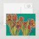 Carte postale aux motifs floraux colorés, tulipes jaune-rouge aux feuilles verts sur arrière - plan bleu turquoise. Pâtes douces et encres sur papier artisanal, dessin de cahier de vie, 2021 © Clipso-Callipso / Julia Khoroshikh www.juliakhoroshikh.art #modernfloral #tulips #expressionism #tulipsart #redtulips#tulippainting #dyingflowers #floralsketch #floralart #floralprint #postcard #cartes carte d'édition