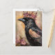 Carte Postale Crow à conte de verdure dans une couronne rose