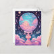Entrez dans un monde de rêves avec cette carte postale fantaisiste avec une boule de cristal brillante entourée de nuages pastel et d'étoiles. Parfait pour envoyer des voeux magiques à des amis et à des proches.
