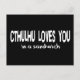 Pour les fans de H. P. Lovecraft, Cthulhu est une source infinie d'humour satirique et d'amour démenté. Diffusez votre compulsion avec ce message simple qui est une jolie moquerie de Jésus bénissant "Cthulhu vous aime...dans un sandwich."