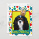 Célébrez un anniversaire avec cette carte de voeux fantaisiste Cavalier King Charles Spaniel Dog. Avec un cupcake équilibré sur sa tête, ce design ne manquera pas d'apporter un sourire et des rires ! BTW, Cette conception a plusieurs versions, avec différentes couleurs arrière - plans. Il y a aussi une invitation à une version Party.