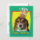 Célébrez un anniversaire avec cette carte de voeux fantaisiste Beagle Chien Chien. Avec un cupcake équilibré sur sa tête, ce design ne manquera pas d'apporter un sourire et des rires ! BTW, Cette conception a plusieurs versions, avec différentes couleurs arrière - plans. Il y a aussi une invitation à une version Party.