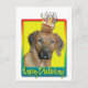 Célébrez un anniversaire avec cette carte de voeux de chien Rhodesian Ridgeback fantasque. Avec un cupcake équilibré sur sa tête, ce design ne manquera pas d'apporter un sourire et des rires ! BTW, Cette conception a plusieurs versions, avec différentes couleurs arrière - plans. Il y a aussi une invitation à une version Party.