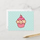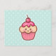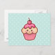 Carte Postale Cupcake rose Kawaii et Pois bleu Mint