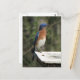 Le design de carte postale comprend une photo d'un oiseau bleu de l'Est mâle au-dessus de sa boîte de nid.