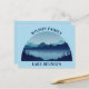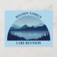 Cette carte postale personnalisée cool de maison de lac dispose d'une rivière bleue sereine entourée d'arbres et de votre texte personnalisé pour une réunion de famille, un voyage de camping ou des vacances d'été. Customisez avec votre nom de famille ou un autre nom de groupe.