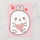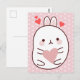Joli lapin blanc et cœurs d'amour roses, cartes postales.