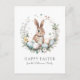 Envoyez des voeux de Pâques sincères avec cette carte postale de voeux de Pâques magnifiquement conçue, qui comprend un charmant lapin brun niché dans une couronne de Pâques d'oeufs pastel, de fines fleurs et une végétation luxuriante. Les éclaboussures d'aquarelle douce apportent une touche artistique, rehaussant l'atmosphère fantaisiste et printanière. L'avant de la carte affiche Happy Easter avec From The [Your Name] Family dans une police de script élégante, qui peut être entièrement personnalisée pour une touche spéciale. Au verso, un message pré-écrit de Pâques offre des voeux de saison chaleureux, bien que vous puissiez facilement le remplacer par votre propre salutation personnalisée, ou le supprimer si vous préférez qu'il soit vide pour être écrit à la main plus tard. Sous le message, il y a de la place pour une clôture (Amour, ou un autre sentiment) suivie des noms individuels des membres de votre famille. Parfait pour envoyer des bénédictions de Pâques à la famille, aux amis et aux proches, cette carte ravissante capture magnifiquement la joie et le renouveau de la saison.