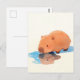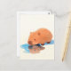 Carte Postale Cute Capybara Drinking from Blue Puddle