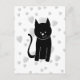 Chat noir sur un arrière - plan motif du coeur. Cette jolie illustration de chat en noir et blanc, est entourée de coeurs d'amour aux couleurs gris clair.