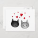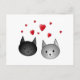 Carte Postale Cute Chats Noirs et Gris, avec Coeurs.