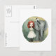 Carte Postale Cute Girl Red Hair With Elephant and Bird