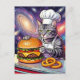 Carte Postale Cute Grey Tabby Cat Chef Making Cheeseburger